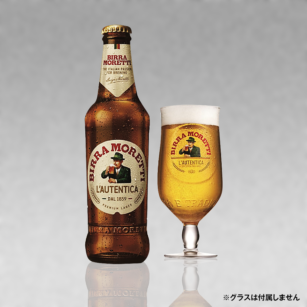 【イタリアビール】モレッティBirra Moretti メールで質問する 商品のお問い合わせ *印は入力必須となります。 * 商品名 * お名前 * e-mail * お問合せ内容 厳選麦芽使用のコクのあるイタリアンラガー モレッティ(Birra Moretti)は、1859年に創業されたイタリアで最も古い歴史を持つビールブランドの一つです。 髭を蓄えた老紳士のラベルで親しまれ、厳選した麦芽を使用した爽快な喉越しと適度な苦味が特徴のラガービールです。 ピッツァや揚げ物との相性が良く、イタリア国内シェアNo.1の定番ビールとして知られています。 在庫状態在庫有り|即日発送できます 販売価格 ¥430(税込) 数量本 ↓ 商品オプションを選択してからカートボタンをクリックして下さい ↓ 商品オプションの選択 1本ラッピングオプション 必要無し(0円) 1本分注文(+150円) 2本分注文(+300円) 3本分注文(+450円) 4本分注文(+600円) 5本分注文(+750円) 6本分注文(+900円) 7本分注文(+1,050円) 8本分注文(+1,200円) 9本分注文(+1,350円) 1本ラッピングとは? 1本ラッピングオプション(1セット:¥150) 1本ラッピングオプションは、ダークブラウン系の袋状専用ラッピングにおしゃれなホワイトのリボンを施した可愛らしいオプションです。 簡単な手みやげや、バレンタインデー・ホワイトデーのお返しなどにピッタリのサービスです 容 量330mL アルコール度数4.5% 産 地ジューリア州 タイプペールラガー 苦みレベル 香りレベル 店長のコメントスッキリ飲みやすい王道ラガー。麦のコクはしっかり感じられるのに重すぎず、ホップのほろ苦さが後味をキュッと引き締めてくれる。クセが少なくて料理と合わせやすいから、ピザやパスタ、揚げ物とも相性抜群。食事と一緒に気軽にグビっといける、バランスのいいビールです。 今オススメのギフトアイテム お祝いギフト 人気ドイツビール330ml 5種10本 飲み比べセット 在庫状態: 在庫あり 販売価格 ¥6,080 お祝いギフト 人気ドイツビール330ml 10種10本 飲み比べセット 在庫状態: 在庫あり 販売価格 ¥6,180 専用グラス付特別黒ビール限定セット 輸入黒ビール330ml 6種6本 飲み比べ セット 在庫状態: 在庫あり 販売価格 ¥4,980 お祝いギフト ベルギービール デリリュウム330ml 3種6本+専用グラス1個セット 在庫状態: 在庫あり 販売価格 ¥6,350 お祝いギフト ドイツビール 500ml×6種6本+専用コースター6枚付飲み比べセット 在庫状態: 在庫あり 販売価格 ¥5,180 お祝いギフト 人気の黒ビール 330ml6種6本 飲み比べセット 在庫状態: 在庫あり 販売価格 ¥4,100 お祝いギフト 人気ドイツビール 330ml6種6本 飲み比べセット 在庫状態: 売り切れ 販売価格 ¥3,780 お祝いギフト ベルギービールヒューガルデン 3種6本 飲み比べセット 在庫状態: 売り切れ 販売価格 ¥3,880 お祝いギフト ベルギービール デウス750ml+シャンパングラス付セット 在庫状態: 売り切れ 販売価格 ¥7,250 お祝いギフト ベルギービール デウス750ml ギフトセット 在庫状態: 売り切れ 販売価格 ¥5,380 お祝いギフト ドイツビール リーゲレ2種 500ml×2本+専用グラス+コースター3枚付セット 在庫状態: 在庫あり 販売価格 ¥2,780 お祝いギフト シュナイダー・ヴァイセ2種 500ml×2本+専用グラス+コースター3枚付セット 在庫状態: 在庫あり 販売価格 ¥2,780 お祝いギフト ドイツビール シュレンケルラ2種 500ml×2本+専用グラス+コースター3枚付セット 在庫状態: 在庫あり 販売価格 ¥2,780 お祝いギフト イギリスビール トラクエア・ジャコバイトエール・サミエルスミス 330ml 2種4本飲み比べセット 在庫状態: 売り切れ 販売価格 ¥4,100 お祝いギフト イギリスビール トラクエア・ジャコバイトエール330ml 2種4本セット 在庫状態: 在庫あり 販売価格 ¥4,650 お祝いギフト 人気ドイツビール 330ml 4種4本 飲み比べセットA 在庫状態: 在庫あり 販売価格 ¥2,680 お祝いギフト 人気ドイツビール330ml 4種4本飲み比べセットB 在庫状態: 在庫あり 販売価格 ¥2,680 お祝いギフト ドイツビール ホフブロイ2種4本飲み比べセット 在庫状態: 在庫あり 販売価格 ¥3,250 お祝いギフト ベルギーフルーツビール モンゴゾビール3種4本飲み比べセット 在庫状態: 在庫あり 販売価格 ¥3,650 お祝いギフト ドイツビール 330ml 3種3本飲み比べセットC 在庫状態: 在庫あり 販売価格 ¥1,930
